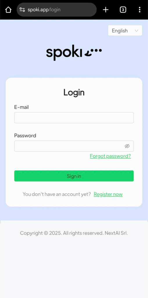 La piattaforma Spoki è una WebApp; è possibile accedervi da qualsiasi pc/mobile da browser (si consiglia Google Chrome).