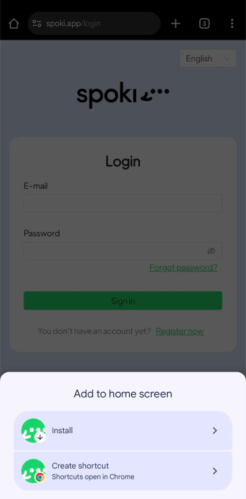 Non esiste un’app Spoki e il numero attivato non può essere associato alle tradizionali App di WhatsApp. Da mobile è possibile salvare la pagina di Spoki alla propria Home in modo da avere accesso facile e diretto alla piattaforma come riportato nelle istruzioni seguenti. Aggiungendo Spoki alla Home, è possibile ricevere le notifiche per i nuovi messaggi da leggere.