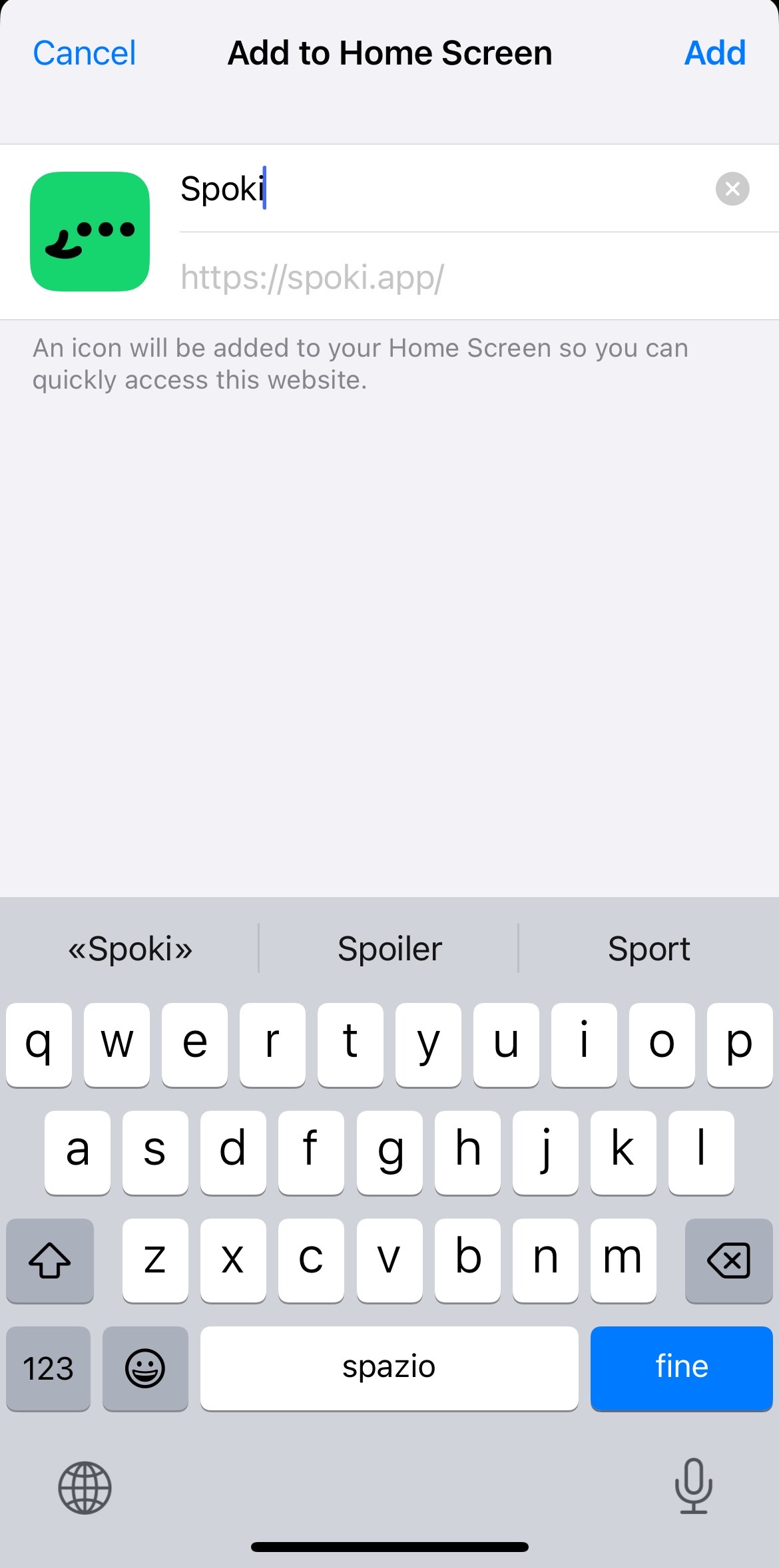 Di seguito le istruzioni per salvare Spoki alla Home dello smartphone: