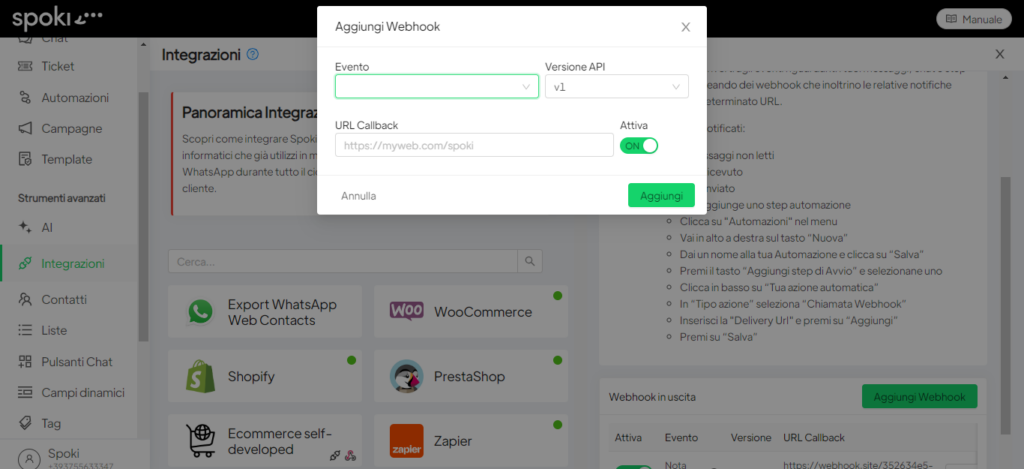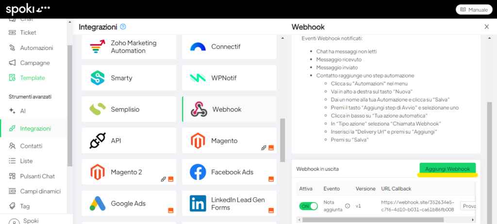 • Integrare Spoki con i Webhook