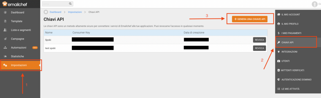 1.1 Generare chiavi su EmailChef #