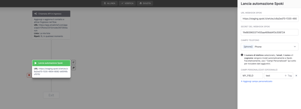 2. Guida all’integrazione – Avviare automazione Spoki da automazione EmailChef #