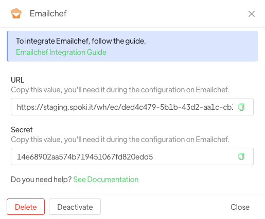 1.2 Attivare integrazione EmailChef su Spoki #