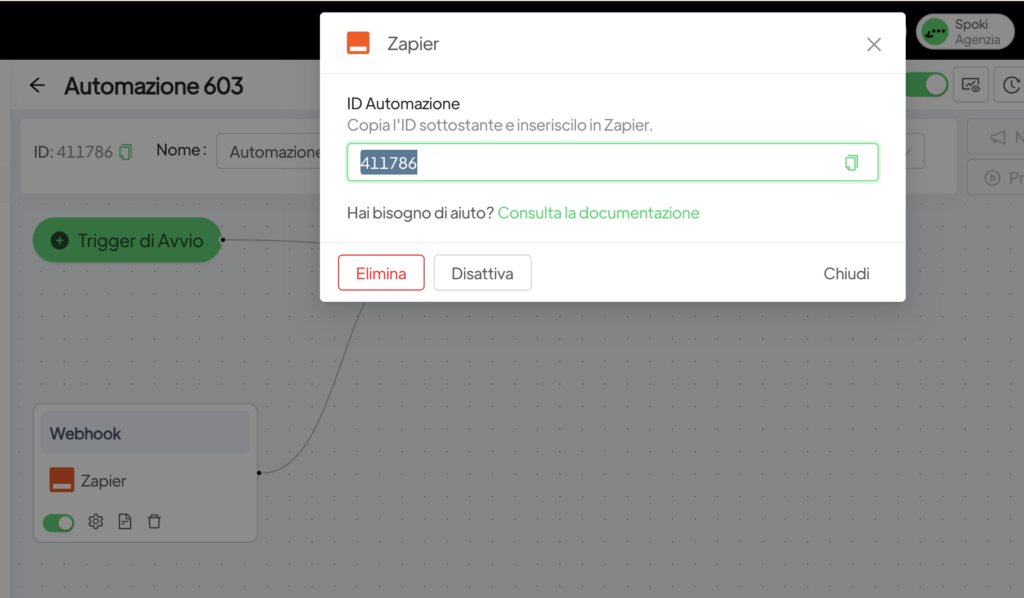 Step 4: inserisci l’ID dell’automazione Spoki su Zapier