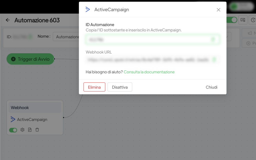 - Clicca sul tasto “Attivo” in alto a destra per attivare l’automazione da ActiveCampaign