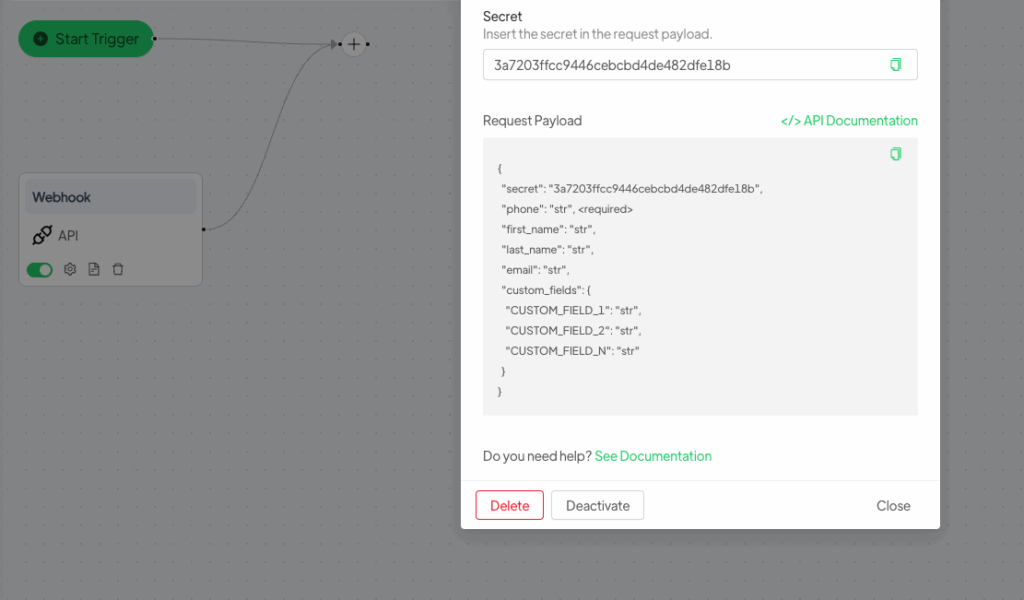 Inoltre, è possibile rendere dinamica l’immagine all’interno del template selezionando come trigger integrazioni → API e personalizzando i campi dinamici. Successivamente, è necessario aggiungere il template e impostare il media file scegliendo tra due opzioni: “popolare in base al contatto” oppure “statico”.