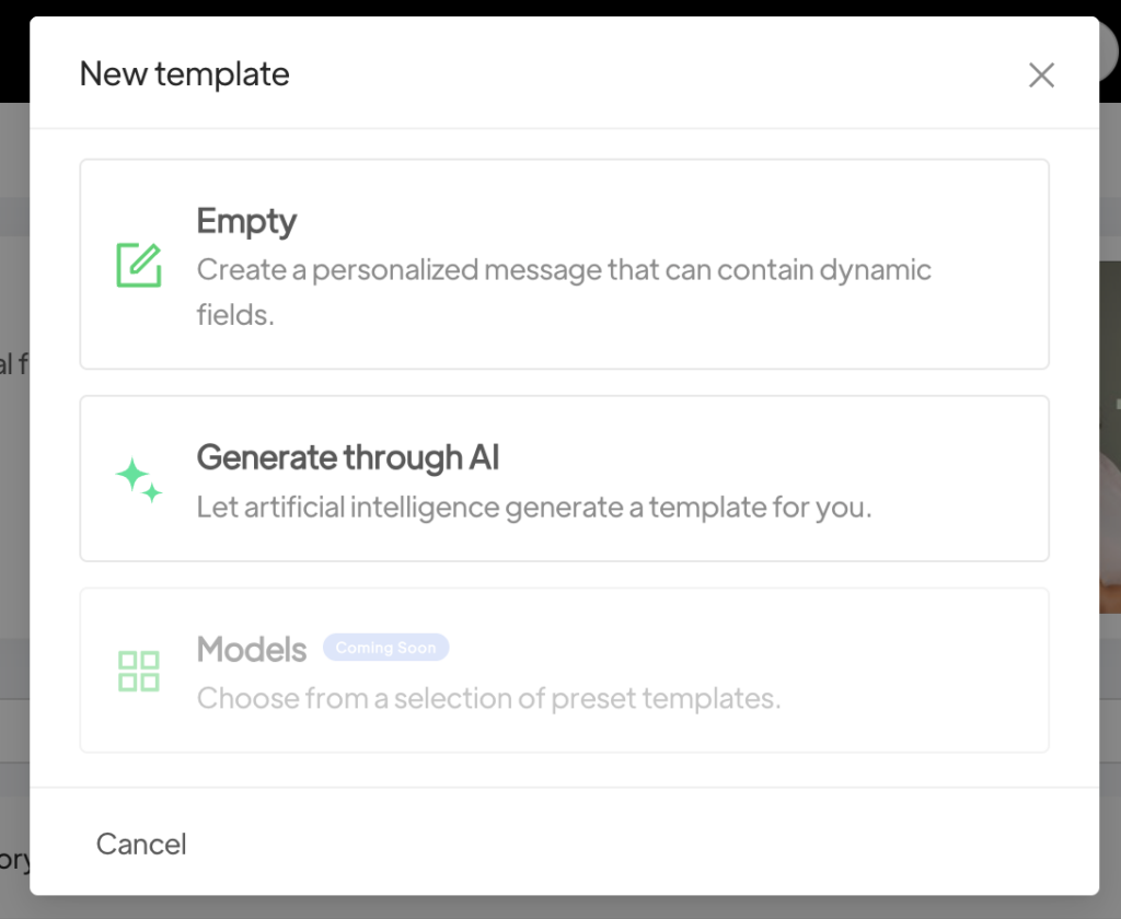 Se scegli la generazione tramite AI, dovrai indicare l’obiettivo del messaggio, fornire una breve descrizione e selezionare il tono (persuasivo, formale, amichevole, ecc.).