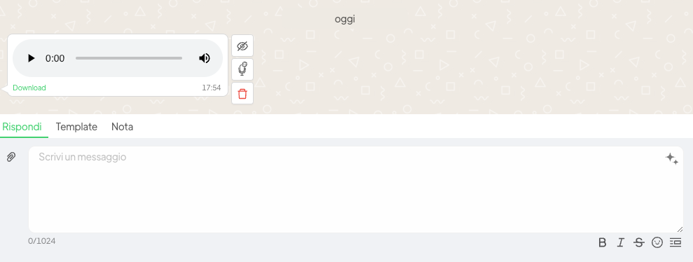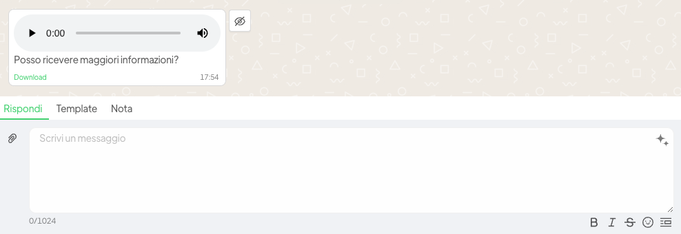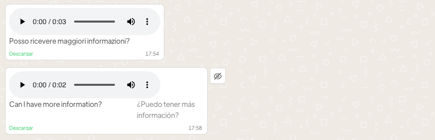 If the customer sends a message in a language different from the one set in the Company section of the account, it will be possible to translate the message by clicking on the button on the left.