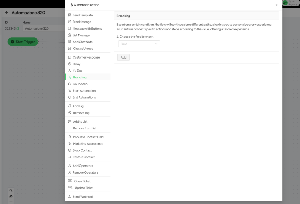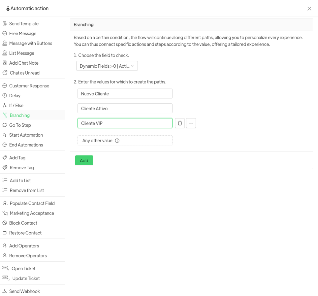 The Branching option helps you build smarter, more targeted automations, improving contact management and optimizing customer communication. Take advantage of this feature to make your automations more effective and personalized!