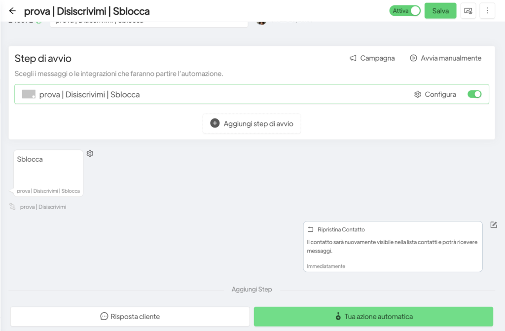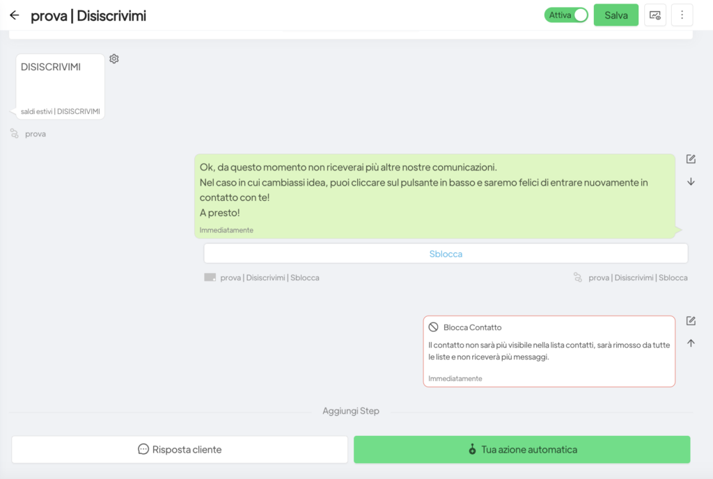 In this case you will have to create a second automation, so that if the client writes unlocks, then the Spoki automation restores the contact. So that we can start sending him communications again.
