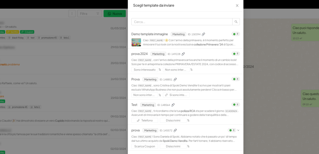 - Open the chat of the contact you want to send it to in Template and click on “Choose from all Templates”