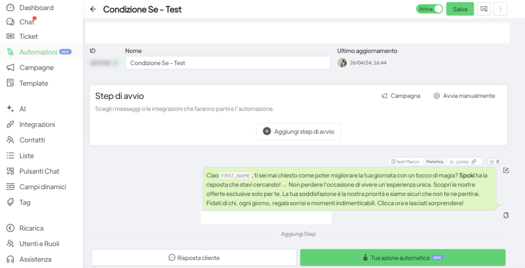 It is possible to segment clients to whom you want to send certain messages in the Automations section of Spoki.