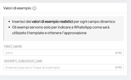 The last step is to populate the example dynamic field (on the right) so that the link is clickable for approval to Whatsapp. The link should lead to a page that actually exists.