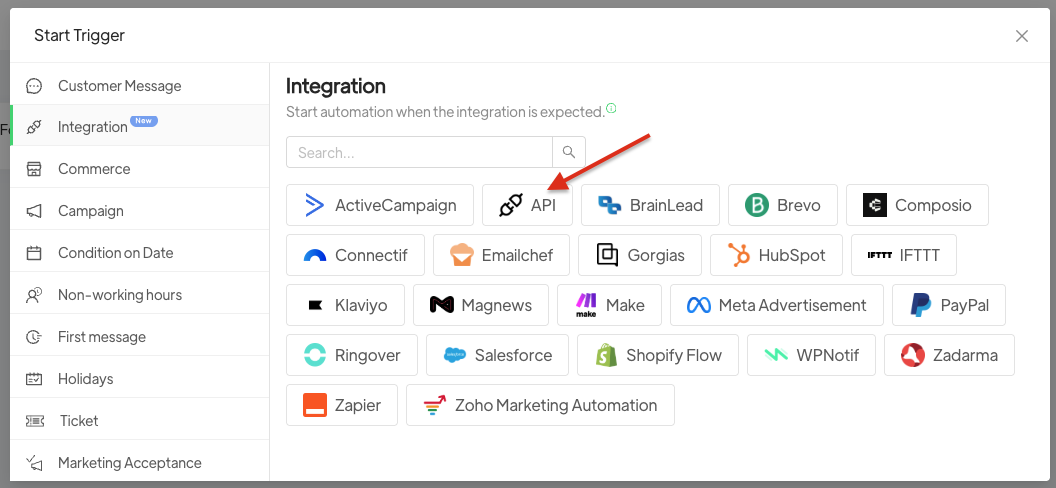 A panel will open with the information to be inserted into the API. For full details on how to set up the APIs, you can consult the following documentation: API Documentation.