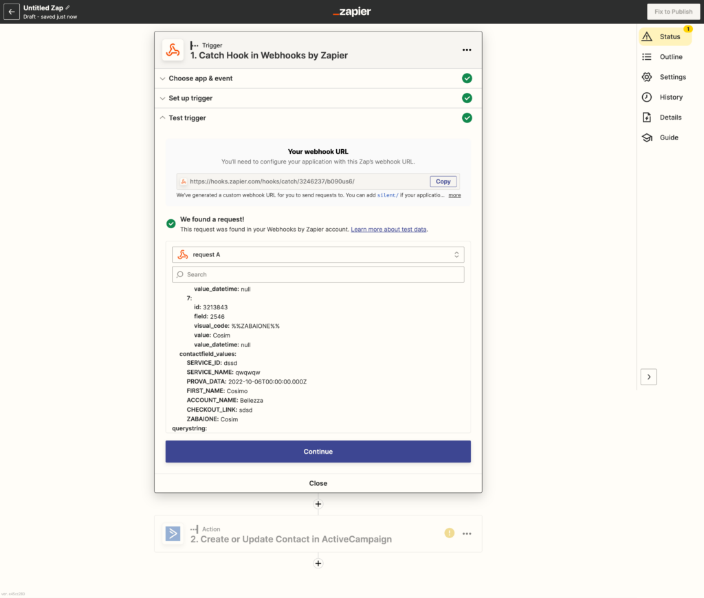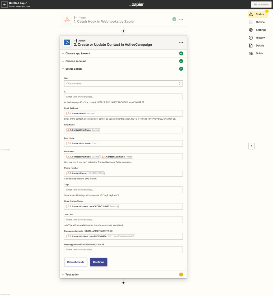 In the last step, go back to the zap to link the dynamic fields you want to export to your Active Campaign management system