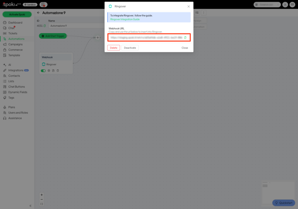 Below we will see how to create a new automation to connect with Ringover. If you have already created the automation, you can skip this step.