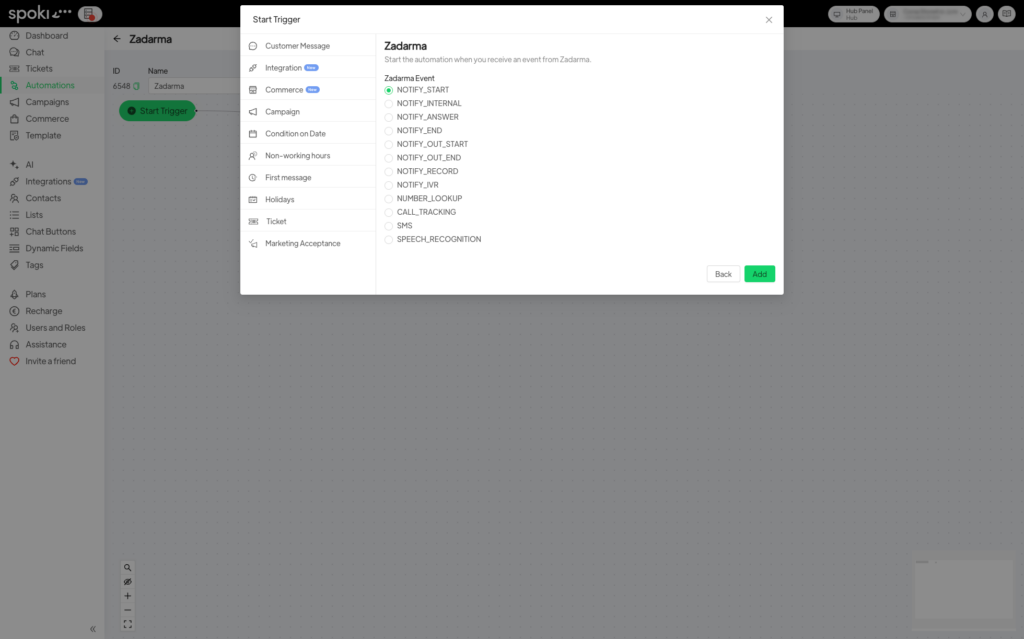 Thanks to this integration, you will be able to start a Spoki automation every time there is an event in Zadarma