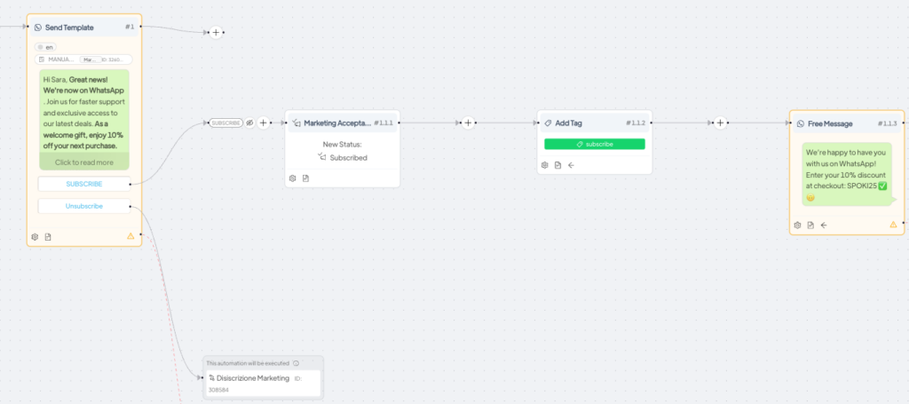 WhatsApp is a direct and personal channel: sending an opt-in message immediately allows you to obtain the customer’s consent, build trust, and create an active contact list that complies with Meta’s policies. This ensures all future communications are more effective.